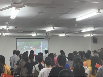 大会尾声,全体党员同志观看海南大学为新中国成立七十周年的献礼视频,在党的信念感召下,手挥五星红旗,一同歌唱《我和我的祖国》,新时代要有新气象,更要有新作为。吾辈当自强,昂首阔步,奋勇向前。