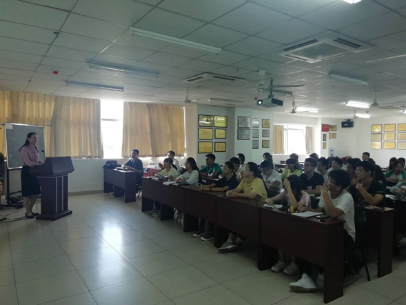 2019年10月23日上午,海南大学党委常委、组织部长韩淑梅在研发楼710室,为beat365中国唯一官网2018级7、8班学生讲授“不忘初心、牢记使命,励志勤学、不负青春”形势政策课。