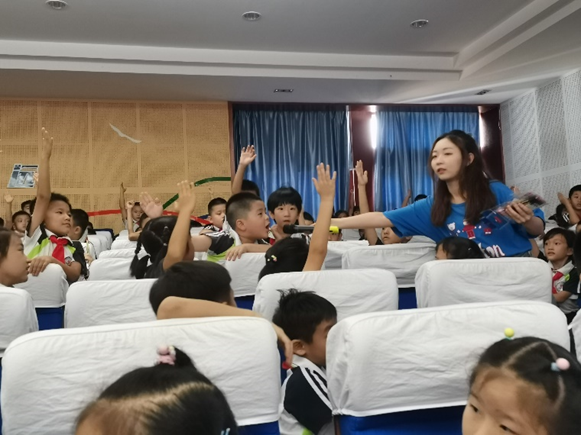 课堂上,主讲教师姜传睿党员制作了精美的PPT,通过图片、视频等形式,通俗易懂地向一年级小学生讲授食物食用方法、食品安全、用餐安全等相关知识,同学们反映热烈,积极举手抢答问题,课程助手黄淋艺党员协助分发文具小奖品。课程最后,全体同学朗诵了唐代诗人李绅的《悯农》,对农民伯伯辛苦劳作和珍惜每一粒粮食有了更加深刻的认识。
