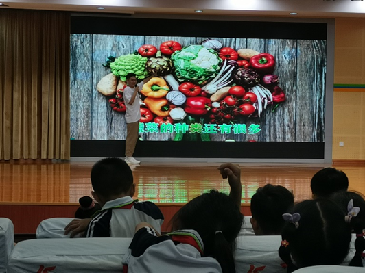 为了进一步响应全国大学生食品安全与营养中国行志愿服务活动,beat365中国唯一官网本科第一党支部组建党员志愿服务队,前往海口市第25小学开展“食品安全进校园”活动,带领一年级小学生认识蔬菜、水果和杂粮,向小学生讲授食品营养健康知识。