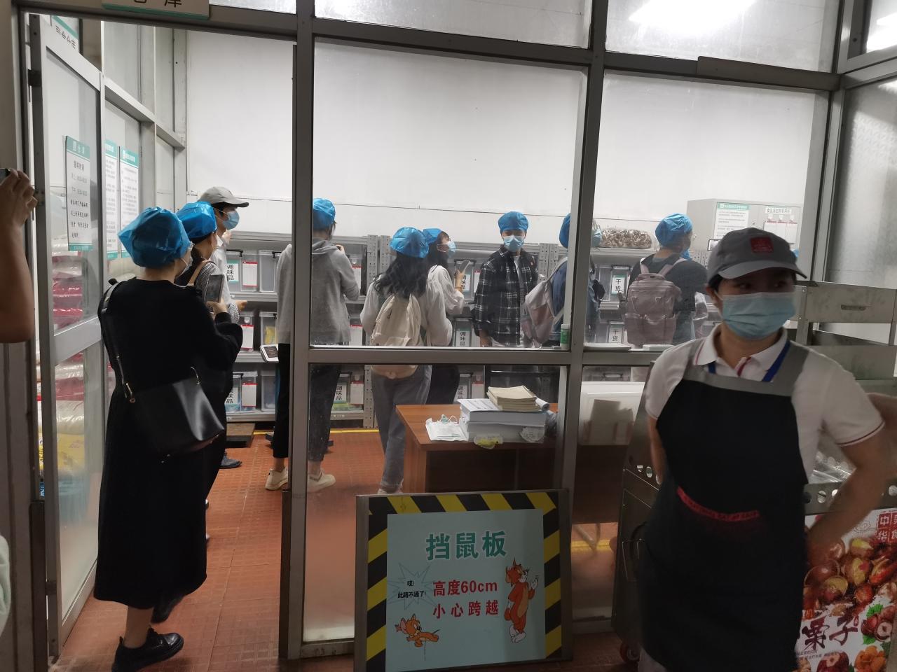 学员们在学校师生事务保障中心第一党支部符万祺书记、冯运斌老师的带领下,分组进行参观与学习。首先来到位于第一食堂后方的由海南大学与海口市美兰区食品药品监督管理局共建的校园食品安全工作室,在工作人员的示范下,学员们对食堂供应的蔬菜样品进行了农药残留等测试分析,了解了学校师生事务保障中心为了保障师生舌尖上的安全,各类食品从进货到上桌,都经过了严格的筛选、测试和把关。随后,学员们来到学校第一、第二食堂,现场观摩后厨操作过程,现场观摩后厨操作过程。食堂主管化身为导游,带领学员们走进食堂后厨,一路参观蔬菜清洗间、加工间、切配间、食材存储间、碗筷清洗间、消毒间等,同时介绍了大型机械设备如灶具、消毒柜等相关设施的工作流程和使用方法,使同学们对食堂的各种硬件设施有了初步认识和了解,使得同学们对食堂的日常工作有了更加直观的感受。