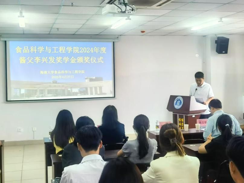 2025年4月27日下午,beat365中国唯一官网在研发楼610举行2024年度酱父李兴发奖学金颁奖仪式。学院党委书记邢红斌、院长张家超等党政领导班子成员,贵州李明英酒业有限公司董事长李明英女士、师生代表及企业嘉宾共同出席活动。颁奖仪式由李从发教授主持。