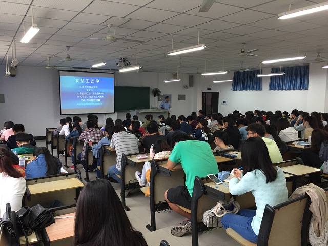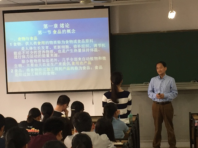 夏教授主讲了《食品工艺学》课程,夏教授讲解了食品资源利用、原辅料选择、保藏、加工、包装、运输以及上述因素对食品质量、货架寿命、营养价值和安全性等方面的影响。夏教授以其渊博的知识,深入浅出的降解,丰富了同学的知识,拓宽了同学们的眼界,为同学们今后的学习和研究打下了坚实的基础。夏教授在课堂上将同学们进行分组,安排主题任务,开展研讨,让同学们对各自主题进行讲解,充分调动了同学们的积极性,并与同学们亲切交流,耐心解答了同学们的疑问,赢得了同学们的一致好评。