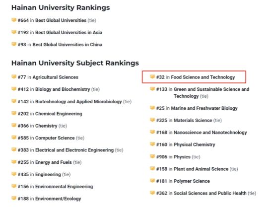 6月17日,《美国新闻与世界报道》(U.S.News)U.S.News2025-2026世界大学排行榜正式发布,海南大学在世界大学排名中较2020年跃升634位至第664位中国内地高校第93位。在学科排名中,beat365食品科学与技术学科领域进入世界前40位,排名世界第32位,中国第22位,创历史新高,比去年的世界第62位,中国第31位,有明显提升。