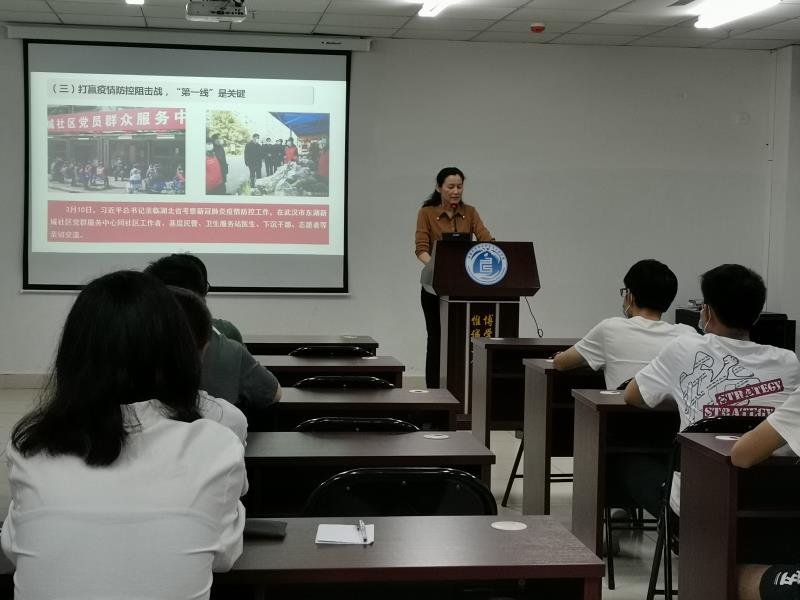 此次形势政策课的主题为《始终牢记习近平总书记的殷切嘱托,让青春为祖国绽放》。在授课中,韩淑梅常委围绕中国疫情防控阻击战的主要特点、重要启示以及我国取得疫情防控阻击战重大战略成果对新时代大学和青年学生责任与使命的再思考等三个方面,用鲜活的事实系统性总结了中国战“疫”取得的伟大成就。疫情发生以来,以习近平同志为核心的党中央高度重视,审时度势,运筹帷幄,成立工作领导小组,建立联防联控机制,发挥我国制度优势,始终把人民群众的生命安全和身体健康放在第一位,善做善成,以强烈的责任担当,在大战中践行初心使命,用抗击疫情的生动实践进一步彰显了中国特色社会主义制度的政治优势。韩淑梅常委指出,为做好学生返校复学工作,学校党委和各二级党组织带领党员干部,切实提升政治站位,扛牢政治责任,加强分析研判,做好统筹谋划,落细落实措施,多措并举为学生返校复学“保驾护航”。最后,韩淑梅常委以本校学生参与家乡防疫抗疫为例,勉励同学们要坚定理想信念,传承并弘扬战“疫”精神,将青春的责任担当扛在肩上,深植家国情怀,书写不负伟大时代的青春华章。