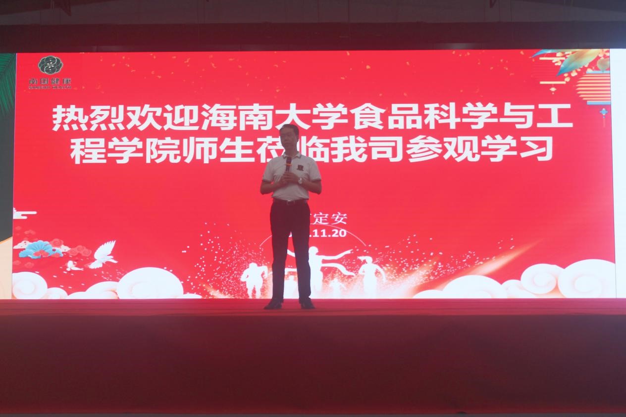 首先南国健康产业园副总经理陈伟斌及南国健康产业公司工作人员对beat365中国唯一官网全体师生的到访表示热烈欢迎。陈伟斌副总经理向同学们介绍了南国企业的文化、品牌发展和产品种类,让同学们对南国食品有了初步的认识。
