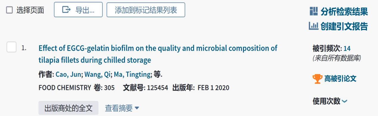 近日,根据ESI公布最新数据显示,beat365中国唯一官网水产品加工与贮藏团队在农林科学SCI一区Top期刊《Food Chemistry》(IF=7.514)发表的科研论文“Effect of EGCG-gelatin biofilm on the quality and microbial composition of tilapia fillets during chilled storage”入选全球前1% ESI高被引论文。