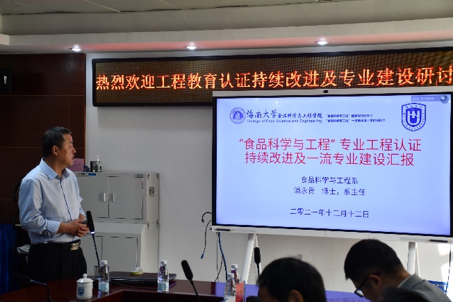 食品科学与工程专业系主任潘永贵作工程教育认证持续改进及一流专业建设汇报,详细介绍了食品科学与工程专业工程认证持续改进情况及存在的问题。食品质量与安全专业系主任云永欢作食品质量与安全专业申报国家一流专业建设汇报。金征宇主任对食品科学与工程专业工程教育认证改进情况及食品质量与安全专业建设进行现场点评,强调工程教育认证的关键是持续改进。副主任刘静波对工程教育认证改进中的问题作了解答并提出建议,指出工程教育认证持续改进需要全体老师参与,对于加快一流专业建设和提高人才培养质量具有重要意义。与会专家分别针对beat365工程教育认证持续改进和专业建设提出建设性的意见和建议,指出改革教育评价应注重学生能力和素质的培养,促进教研融合。
