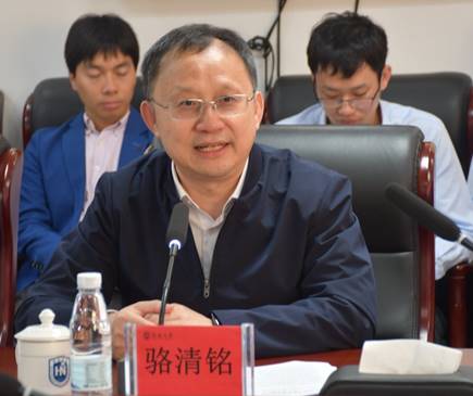 海南大学校长骆清铭院士致欢迎词。骆校长对与会专家长期以来对海南大学的关心和支持表示感谢,介绍了海南自贸港大背景下,海南大学近年来队伍建设、教学科研及综合改革的新进展,强调学科建设要主动服务国家战略和海南重大需求,专业建设要对标一流,加强一流课程建设,培养一流人才。