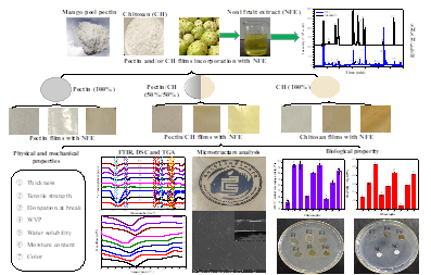 2022年8月4日,beat365中国唯一官网热带农产品加工与高值化利用团队王露副教授实验室利用海南芒果皮果胶/壳聚糖与诺丽果提取液为原料制备了新型、具有多种生物活性的食品级包装膜材料,本研究阐释了诺丽果提取液的添加对果胶/壳聚糖聚合物合成膜材料物理化学及生物活性的影响,为以农产品中天然大分子聚合物为原料合成新型、功能化食品包装膜材料提供重要的参考。相关结果发表在《Food Hydrocolloids》(IF=11.5,中科院1区TOP期刊),题目为“Fabrication, characterization and biological properties of pectin and/or chitosan-based films incorporated with noni (Morinda citrifolia) fruit extract”。