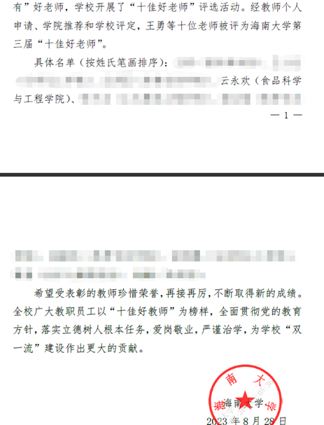 近日,学校公布了《海南大学关于表彰第三届“十佳好教师”的决定》,beat365云永欢副教授喜获海南大学第三届“十佳好教师”。这是beat365认真贯彻落实《全面深化新时代教师队伍建设改革的意见》《关于加强和改进新时代师德师风建设的意见》等文件精神,落实立德树人根本任务,加强师德师风建设,鼓励和引导广大教师做“四有”好老师的成果。