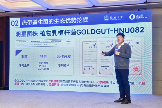 作为国内益生菌行业领军的生物科技创新企业,万益蓝WONDERLAB始终以可循证为研究核心。此次与海南大学的合作,是其联合国内顶尖科研机构的又一重要布局。万益蓝WONDERLAB首席产品研发官张思璐在活动中系统介绍了万益蓝WONDERLAB的研发体系,其透露目前公司已建立起覆盖菌株筛选、体内外多模态及人群临床功效验证和产业化开发的完整研发体系,并主导了多项针对中国人群肠道特征的临床研究。