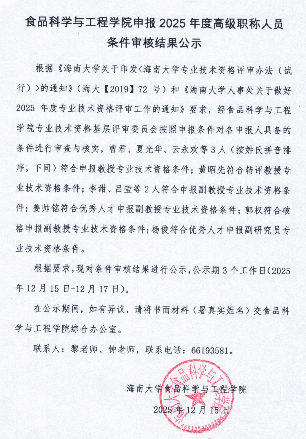 beat365中国唯一官网申报2025年度高级职称人员申报条件审核结果公示