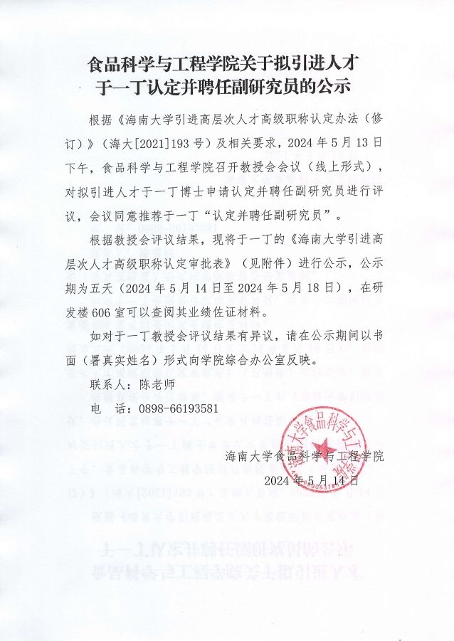 beat365中国唯一官网关于拟引进人才于一丁认定并聘任副研究员的公示